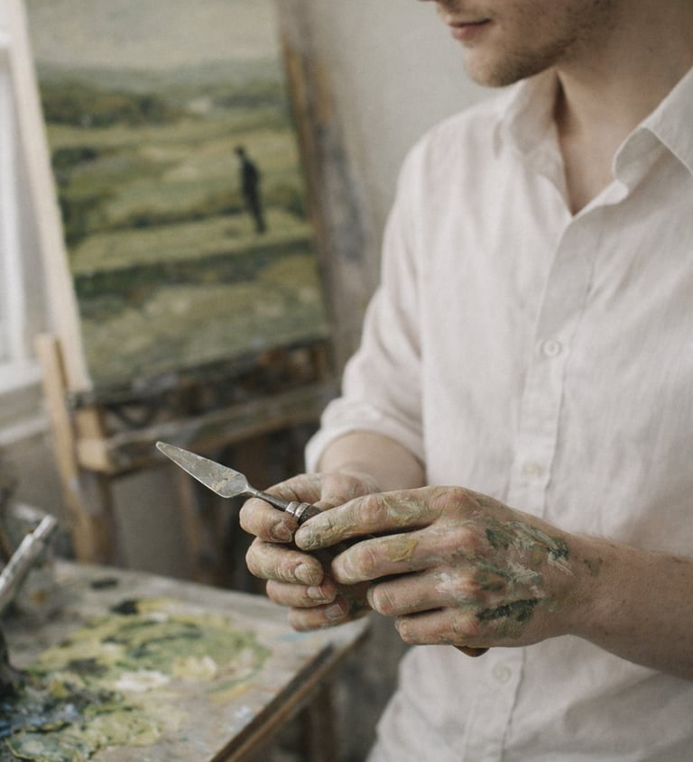 Each painting is made slowly and with intention, shaped by repetition, restraint, and care.